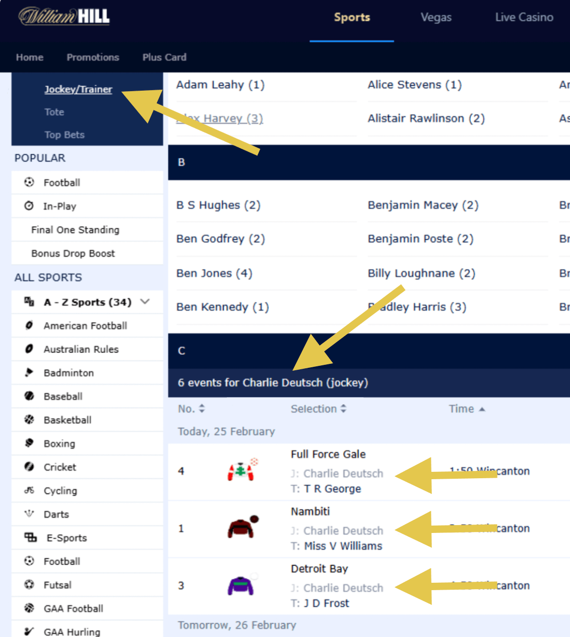 William Hill has a clever A-Z function that pinpoints them within seconds.